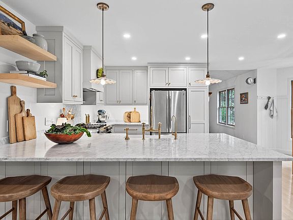 The custom kitchen features inset cabinetry, marble counters, and solid brass hardware. Nearly every detail has been updated, including 5" millwork, solid wood doors, French windows, designer lighting, and solid hardwood floors. Cozy fireplaces anchor the living spaces, while the open-concept layout is ideal for entertaining. Upstairs offers four bedrooms, perfect for family, guests, or office space. Outside, enjoy stunning perennial gardens, a large deck, and a generous yard—all set on a charming corner lot with a welcoming front porch and a cul-de-sac dead end street. A rare blend of modern updates and classic craftsmanship, this home stands out in one of Shoreview’s most desirable communities and top Moundsview schools.