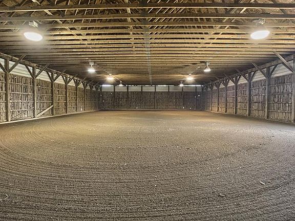 Well Designed 60'X100' INSIDE ARENA! Fully Remodeled 4 Bedroom 2 Story Farmhouse. 2 Full Baths! 1st floor laundry! Oak hardwood 3/4" floors & baseboards. Bay Window to covered porch!. Hickory Kitchen and Bathroom Cabinetry! French doors into Living room. Outside patio w/ natural gas outdoor grill!. Wrap Around Deck! 60'X100' barn with 14 rubber matted stalls. Eight 12'X12' stalls and Five 10'X10'. Barn has a new metal roof, lockers, brick hallway floors, indoor wash area! The huge indoor arena has 14' ceilings. 75'X140' Outdoor arena. Maintenance free vinyl, white fencing enclosing 2 large pastures. Free Gas to house and a gas line is run to the barn, if you want to heat the barn too!!