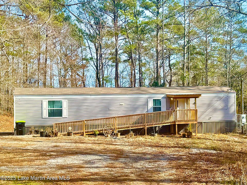 Looking for an affordable 2-bedroom 2 bath home? This 14' X 60' single wide mobile home was new when purchased and was only lived in around 1 year and comes with almost 2 acres of land. Seller had small front and back porch built and is wheelchair accessible. Small fenced in area off the back ramp is large enough for a small dog to enjoy being outdoors. Kitchen and den have an open floor plan with a bedroom and bath on each end of the home. All appliances, some furniture, and washer/dryer are included in the $109,900 asking price. Don't let this one get away before you schedule a showing.