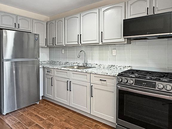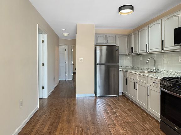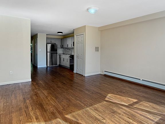 Spacious 2.5 bedroom with two full baths featuring hardwood floors throughout, stainless steel appliances, plenty of storage space, modern kitchen cabinets, base board heating, brand new washer/dryer, refrigerator and microwave. The livingroom is very spacious and has an abundance of sunlight. The primary bedroom has a en-suite bathroom, built-in closet and can accommodate a Queen size bedroom set. The second bedroom can accommodate a Queen size bedroom set and has a built in closet. The third room, the smallest of the three, can be used as an office, play room, storage room, etc. Pets upon approval. Call to schedule an appointment.