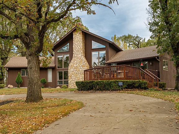 This inviting home features 4 bedrooms and 3 bathrooms with plenty of space for family and entertaining. The main level offers a bright kitchen with a breakfast bar, tile backsplash and ample cabinetry, along with casual and formal dining areas. The living room showcases a wood fireplace with stone surround and stunning 20-foot vaulted ceilings. The primary suite and laundry are conveniently located on the main floor. Upstairs, an open staircase leads to a loft area with two bedrooms and a full bath. The lower level includes a game room and a spacious family room. Enjoy two decks new roof gutters,a circle driveway, a 5-car garage and beautiful, mature oak trees, all on approximately 2 acres along a blacktop road.