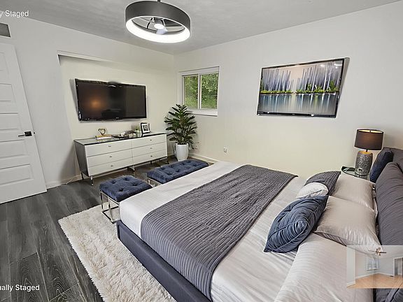Modern light fixturesBlack chain-link fencingFresh paintUpdated kitchen cabinetsExtended downspoutsLandscaped front yardRefinished vanities and countertops