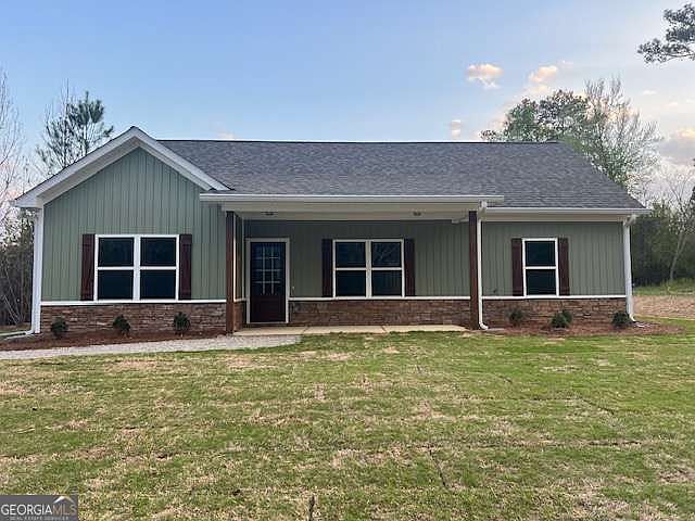 New Home!! Not in a subdivision! Located on 5 acres! Three Bedrooms and Two Full Bath Stepless Ranch Style Home! Vaulted Great Room and Dining Room! LVP Type Hardwood Flooring in the Living Room, Dining Room, Kitchen, Laundry Room, Hallways and all three bedrooms! Covered Back Patio! Split Bedroom Plan! Kitchen with Granite Countertops, Farm Sink, and Counter Height Bar Area plus Stainless appliance package which includes a smooth top electric stove, Microwave Vent Hood and a dishwasher. Master Suite with walk in closet and Master Bath with Granite Countertops, Framed Mirrors, Double vanity and a Stand-up shower with Shower Door! Master Bedroom, Living Room and Covered Back Porch have a ceiling fan. Hall Bath with Granite Counter tops, Framed Mirror and a prefab style Tub/shower combo! Exterior is Low-Maintenance Vinyl Siding with a Rock Water Table. Home is Completed and ready for a quick closing!!