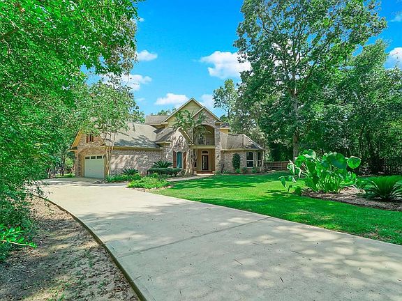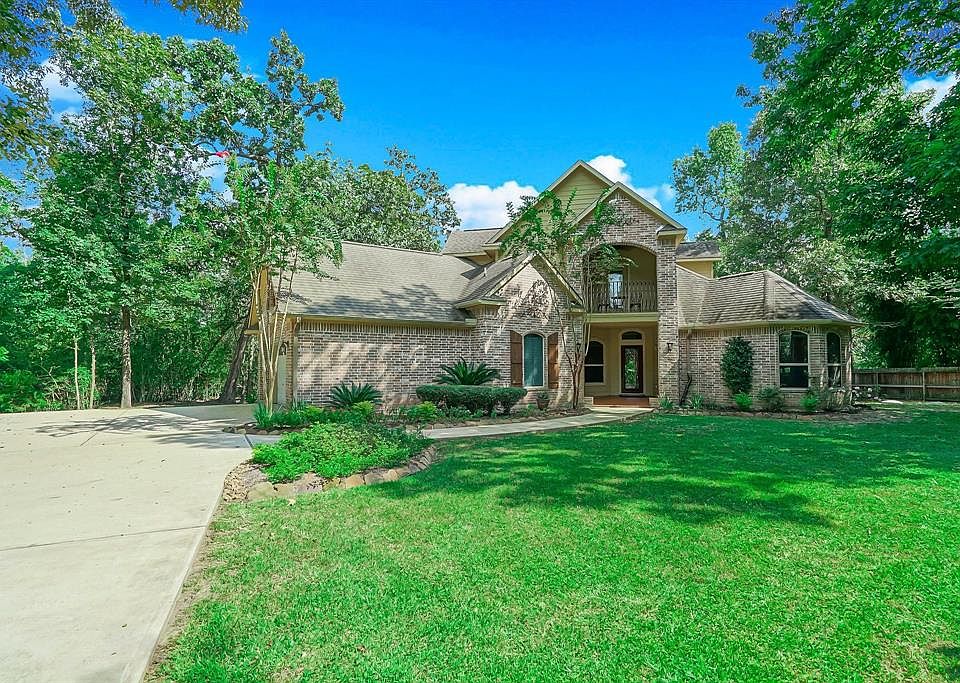 This beautiful home with 4 Bedroom in a split plan is set back from the road and nestled on a 1+acre wooded lot with LOW taxes and no MUD tax in Ridgelake Shores. A peaceful boutique community located outside of The Woodlands and close to Conroe. Your new home is a perfect balance of rustic charm and functional floor plan with 3 bedrooms down and one bedroom ensuite bath upstairs.The master bedroom suite features double sinks granite counters, soaking tub & separate shower. Covered patio space on the front and rear of the home overlooking the private backyard. Enjoy the memories with your friends and family in the new pool/spa built in 2017 with LED lights, weeping wall, iron security fence and gate. There is a Trophy Bass lake with 2 stocked fishing lakes, community parks, basketball courts and a pavilion and golfing very close by. This home and property was NOT effected by Hurricane Harvey or any previous storm. Come and enjoy the neighborhood activities today!