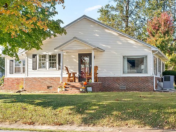 This charming ranch home has the integrity of a classic 1950's cottage, balanced with modern conveniences. The home features lovely hardwood floors (NO carpet!), baseboard molding, metal roof, a warm color pallet, and 2-car detatched garage. Renovated Kitchen w/ double French doors, tall spacious white cabinetry, butcher-block-like countertops, large cast iron sink. The primary features a long closet with ample storage and an en-suite bath w/ beautiful barn door. Den could also serve as a 3rd BR. Beautiful spacious level yard with mature trees! Front porch is perfect for morning coffee. This house is a vibe, owner has loved living here. Real hardwood under flooring in kitchen and den . LR and den Renovated to studs - 2023; bathroom renovation - 2024. New HVAC - 2020.-Multiple offers recieved.