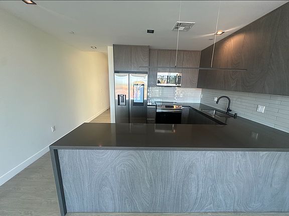 Experience luxury living in this exquisite high-end home that boasts top-of-the-line appliances and an inviting open floor plan. Large windows fill the space with natural light, while the private balcony, that offers a perfect retreat. Ample storage is available throughout, including a master ensuite featuring a massive walk-in closet and a double vanity bathroom for added convenience. Enjoy the included washer and dryer for laundry. The property features a private gated entrance and a charming small courtyard for relaxation. For your peace of mind, gated parking is available in a nearby garage, accessible only to tenants for an additional fee. Plus, indulge in the vibrant atmosphere of the farmers market every weekend, right outside your building! Basic WiFi is included with the unit at no charge and there the option to upgrade to a faster service for an additional fee.