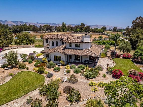 Welcome to Hacienda Antigua, a breathtaking over 10-acre luxury estate just minutes from downtown San Luis Obispo, offering a fusion of refined living, premier equestrian facilities, and sustainable design. This turnkey retreat is ideal for equestrian professionals, luxury buyers seeking space and privacy, or investors with a vision for a boutique training facility or private getaway. At the heart of the property is a 4,725 sq. ft. Mission-style residence featuring cathedral ceilings, exposed wooden beams, custom built-ins, and expansive windows that flood the home with natural light. The gourmet kitchen boasts a large island with utility sink, high-end appliances, and artisan cabinetry. The primary suite serves as a private escape, with French doors, a spa-style soaking tub, walk-in shower, and large walk-in closet. A bonus room offers space for a home gym, art studio, game room, or office. Designed with equestrian excellence in mind, the professionally equipped facility includes a 25-stall barn, 18,000 sq. ft. covered riding arena, 2 large paddocks, 2 loafing sheds, multiple wash racks, outfitted tack room and on-site office and lounge for clients or staff. Three oversized roll-up bays for equipment and storage. Additional structures include spacious workshops, a woodworking and metal shop, a car lift, diesel fuel station, and car wash area, making the property ideal for both equestrian and hobbyist use. Outdoor features also include an archery range, orchard, vegetable garden, potting shed, wood shed, and over an acre of nutrient-rich farming soil. Comfort and peace of mind are enhanced by a Bullfrog 8-person spa, two fully serviced septic systems, and a comprehensive off-grid-ready infrastructure. The estate is powered by a robust solar array, wind turbine, and a Generac generator capable of powering the entire property for over 48 hours. Included in the sale are a tractor with attachments, premium garden and shop tools, and optional custom furnishings such as a dining table, pool table, and bookcases. There’s also room for future expansion with space for a pool, outdoor kitchen, or ADU. Despite its private, rural feel, the property is just minutes from San Luis Obispo’s shopping, dining, and coastal charm. Hacienda Antigua is more than a home, it’s a destination and a legacy property like no other. Schedule your private tour today and experience the balance of luxury, self-sufficiency, and equestrian excellence.