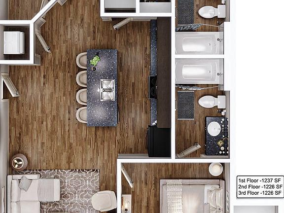 This spacious 3 BR / 2 BA apartment, THE OAK, comes standard with a private patio or balcony, plank vinyl floors throughout, large closets, kitchen pantry, huge granite kitchen island, modern faucet with pull-down-sprayer, energy efficient appliances including washer/dryer, and an aesthetic courtyard view.