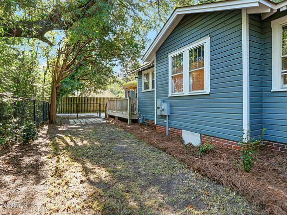 Excellent opportunity for an adorable, move-in ready cottage in a super convenient mid-town location - located under 1 mile to UNCW and minutes to Wrightsville Beach! This charming home offers 3BRs, 2 Full BAs and features original hardwood floors that have just been refinished. The kitchen is bright and airy offering granite countertops, tile backsplash, SS appliances including a gas range and vaulted ceiling with skylight! The ample-sized formal dining room is the perfect spot to host friends and family and the living room features an original fireplace. The primary suite is sure to impress featuring updated bathroom with double vanity, granite countertops, glass and tile walk in shower and large walk-in closet. There is plenty of outdoor space to be enjoyed with a front porch, a large wooden deck, paver stone patio and fenced in side yard area. Paved parking at back is spacious and convenient allowing exit on Wallace Avenue. Several fixtures have been replaced giving this home a designer touch! If you appreciate a home with character, this is one to see!