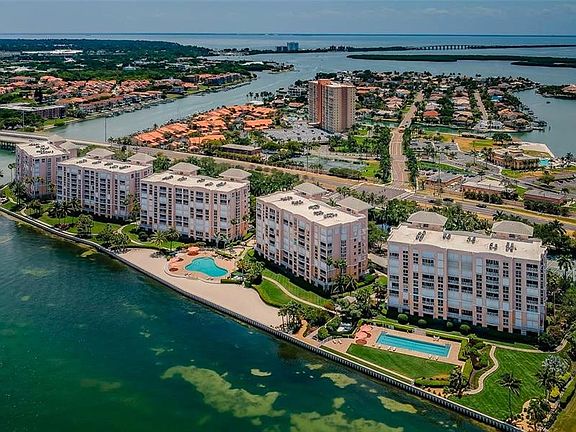 Beautiful Condo at Bacopa Bay located directly on Boca Ciega Bay featuring stunning wide-open water views in this tropical oasis. Welcome to the bright open floorplan featuring two bedrooms and two baths. An elegant entry foyer welcomes you to the bright Great Room with Living and Dining space. This opens to the handsome Kitchen with its beautiful wood cabinetry, stone countertops and stainless appliances including refrigerator, glass cooktop, oven, built-in microwave and dishwasher. Enjoy the large pantry with plenty of storage. The Kitchen has a great view of the Bay and the Family Room. Step out to the private balcony with expansive water views, hurricane shutters to provide safety and sliding doors to the Living Room, Family Room and Master Bedroom. The Master Bedroom has an ensuite Bathroom with a large walk-in shower, lovely double vanity with stone countertop, linen cabinet and a large walk-in closet. There is a Guest Bedroom, Guest Bathroom with combination tub/shower and Laundry with washer and dryer. The property has been meticulously renovated with gleaming marble floors throughout, new fixtures, appliances, new balcony flooring, new 2024 AC and a new roof. The Unit includes a reserved parking space in the covered carport just in front of the entry door to the building. Bacopa Bay was developed by JMC Communities, a highly respected builder in Pinellas County, and offers a 24-hour guard-gated complex with beautiful tropical grounds and winding pathways along Boca Ciega Bay. Among its many amenities is a lovely Clubhouse with a large event/meeting space, game room, Library, Kitchen, onsite staffed management office and a well equipped Fitness Center. Enjoy the two newly renovated heated pools, an in-ground jetted spa, two newly resurfaced Har-Tru clay tennis courts, new elevators, new roof and newly paved streets and street lights. In addition there is a new concrete seawall, car wash station, an EV charging station and the building Lobby is undergoing total renovation. Each of the five buildings has a secured Lobby accessed with a keyless system linked to the Guard Gate. Two pets with 30 lb limit allowed with HOA approval. The Association has fully funded reserves and has completed the Milestone Inspection with no outstanding assessments. Bacopa Bay is one of the most desirable communities along the Pinellas Bayway just minutes from the white-sand Gulf beaches. It is about ten minutes to trendy Downtown St Pete, upscale restaurants, shops and galleries and museums. Contact us to schedule a private tour of the property. HOA fees include cable TV, internet, water, sewer, trash, recreation, grounds maintenance, fully staffed onsite property management common area taxes and insurance and reserve funds.