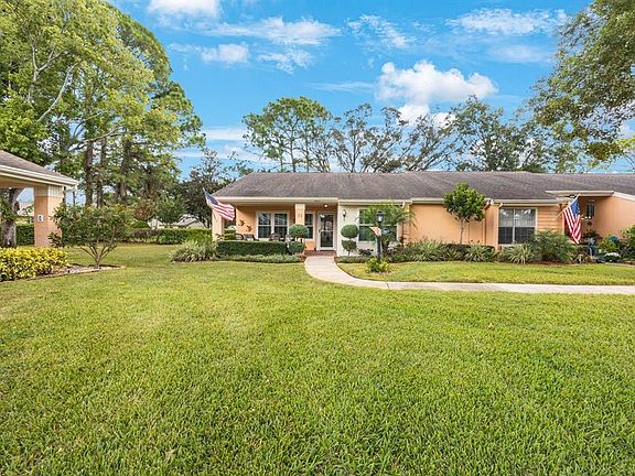 What a Stunner, this end unit single story villa is in move in condition, lots of updates, gorgeous laminate wood flooring, incredible setting, low hoa fees, covered parking with storage, beautiful front porch overlooking the pond. large bedrooms, beautiful sunroom oversized kitchen with eating area, Primary bedroom has its own ensuite complete with double sinks, large walk in closet. Second bedroom also has it's own walk in closet. this complex features a gorgeous pool overlooking a beautiful pond with a fountain in the middle, tennis courts, large clubhouse, beautiful grounds. so convenient to shopping, restaurants, and all that new port richey has to offer.
