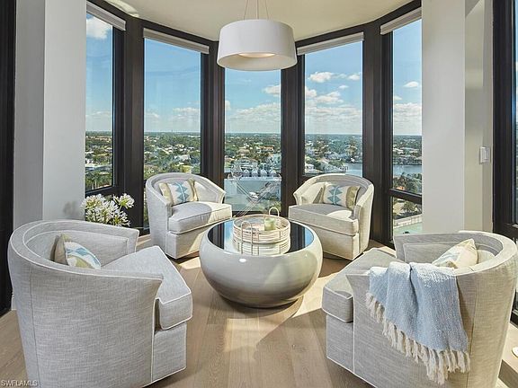 Experience breathtaking Gulf-to-Bay views from this 12th-floor 04 stack residence at Le Parc, rare opportunity to own in one of Gulfshore Boulevard’s most prestigious buildings. From sunrise over Venetian Bay to sunsets across the Gulf, the living room and primary suite frame sweeping views that stretch all the way to Sanibel Island. This impeccably maintained and tastefully updated turnkey furnished home features elegant wood flooring throughout. Floor-to-ceiling windows and sliding glass doors fill the space with natural light and open to two screened terraces, the primary suite and living room overlooking the white sandy beach and the waters of the Gulf of America, the kitchen and guest bedroom capturing the glittering skyline and serene beauty of Venetian Bay. Highlights include original PoggenPohl cabinetry, spacious his-and-hers walk-in closets, electric storm shutters, and two deeded covered parking spaces. Le Parc is a gated, sophisticated luxury building in Park Shore. Residents enjoy an elevated, sun-drenched pool deck, state-of-the-art fitness center, tennis courts, and elegant social rooms, all within a secure, impeccably managed, and financially sound building.