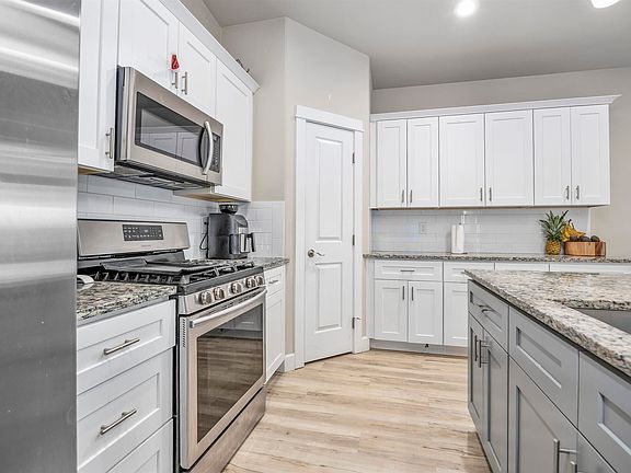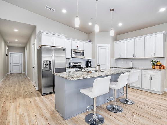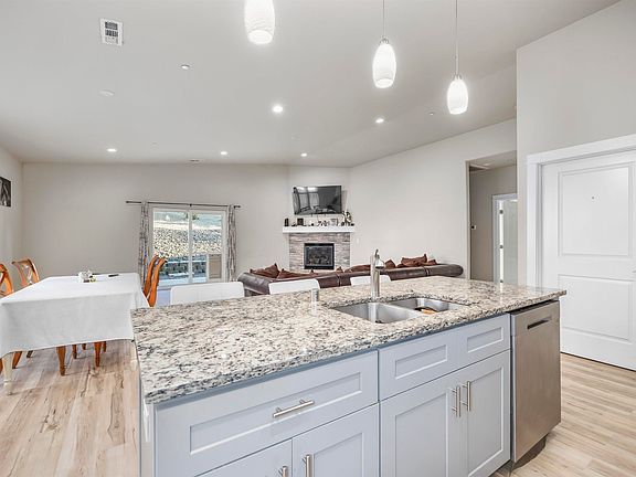 Home Sweet Home in West Village! Built in 2018, this beautifully designed one-level home offers 1,824 sq. ft. of comfortable living space with an open layout that’s perfect for entertaining. Thoughtful custom details are found throughout — from the welcoming entryway and cozy gas fireplace to the raised, vaulted ceilings and stylish laminate wood flooring. The stunning kitchen is a true centerpiece, featuring a large island with breakfast bar, pendant lighting, pantry, crisp white cabinetry, stainless steel appliances, granite countertops, and a full tile backsplash. You’ll find three spacious bedrooms and two full bathrooms, including a well-appointed primary suite complete with a barn-style door leading to the closet and en-suite bath. The private bath offers a granite-topped dual-sink vanity, relaxing soaking tub, and a large tiled shower. Set on a generous 0.25-acre lot, the backyard is fully fenced and terraced for privacy, with a large covered patio that’s perfect for year-round enjoyment. Located in beautiful West Village, just minutes from local wineries, shopping, the Country Mercantile, and with easy highway access for commuters — this home has it all!