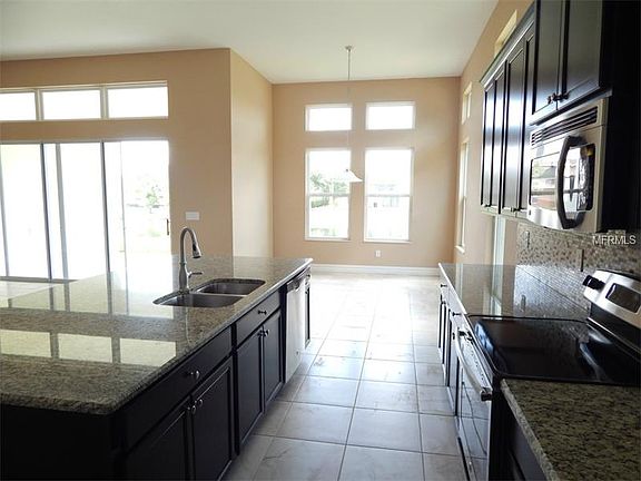 Almost completed new construction in Country Walk. This 4 BR/3BA home boasts a large great room and kitchen with a breakfast nook or dining room as you choose to use it and a 3-car garage. The kitchen features granite counters, maple cabinets, very large island/breakfast bar, walk-in pantry, vented microwave to the outside, backsplash, brushed nickel cabinet hardware and faucets, and stainless steel appliances including the refrigerator. 12' ceilings in the great room, nook and kitchen. 18" x 18" Level 2 tile in all wet areas and throughout the great room and nook. Level 2 carpet in all bedrooms. The master bedroom features a large walk-in closet and the master bath has dual sinks that sit on either side of the tub and a walk-in shower. All bathrooms have granite counters. Nice pond view from the large covered lanai with plenty of room to add a pool or extend the lanai. Upgraded paint throughout, pre-wired pendant lights in the kitchen and fans throughout the home, and USB port charging station. This home can be ready by early summer if not sooner. Photos are of the actual home being constructed.