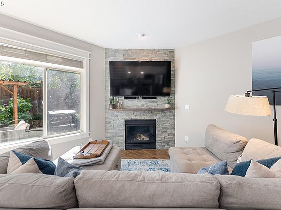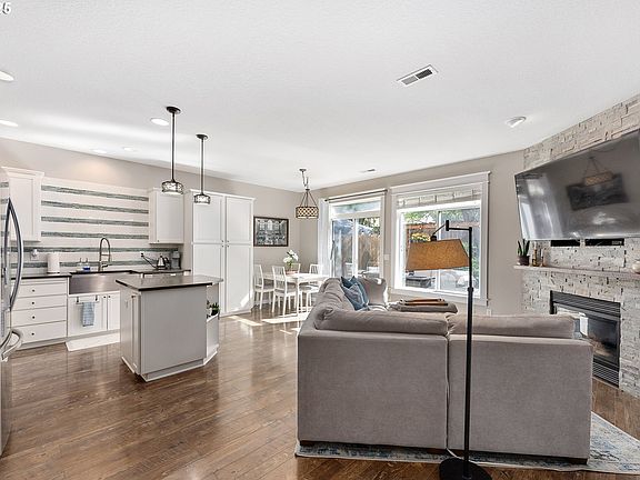 This beautifully maintained and thoughtfully upgraded home is nestled in a quiet community with incredibly low HOA dues of just $50/month. Designed for modern living and entertaining, the open-concept main level features durable and stylish VCT vinyl flooring, a cozy gas fireplace, and abundant natural light that pours in through large windows and a sliding glass door that opens to the professionally hardscaped backyard. The spacious kitchen has a large island topped with quartz countertops, stainless steel appliances, a tile backsplash, and ample cabinetry for storage. Upstairs, you’ll find plush wall-to-wall carpeting and a generous primary suite with vaulted ceilings, a walk-in closet, and a luxurious ensuite bathroom featuring double sinks and a walk-in shower. Two additional bedrooms and a full hall bath offer flexibility for guests, home office space, or a growing household. This home also includes a newer furnace and heat pump for efficient year-round comfort, and a custom racking system in the attached garage for organized storage. Outside, enjoy the private, low-maintenance backyard ideal for grilling, lounging, or gardening. Located in a desirable neighborhood with easy access to schools, parks, shopping, and commuting routes, this move-in ready home truly has it all.