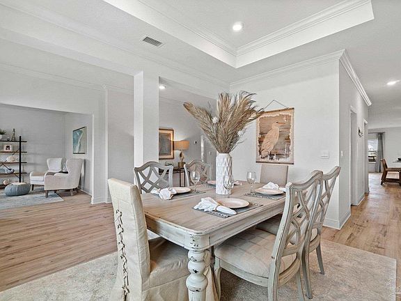 Welcome to Lakes of Woodbine! This community is nestled in the heart of Pace, just off Woodbine Road. Introducing the McKenzie, an exquisite 5-bedroom, 3-bathroom home complete with a 2-car garage. The kitchen boasts an island that overlooks the breakfast nook and family room, adorned with expansive windows that offer a delightful view of the back covered porch. Bedroom 1 offers direct access to the back covered porch and features a stunning en-suite bathroom with a spacious walk-in closet. This remarkable home includes a Smart Home Technology package as standard, featuring a KwikSet keyless entry, Skybell doorbell, automated front porch lighting, an Echo Dot device, and a Qolsys touch panel that seamlessly integrates with your lighting, thermostat, front door, and more. This community will provide an array of resort-style amenities, including a sparkling pool, clubhouse, picturesque sidewalks, and a well-equipped gym.