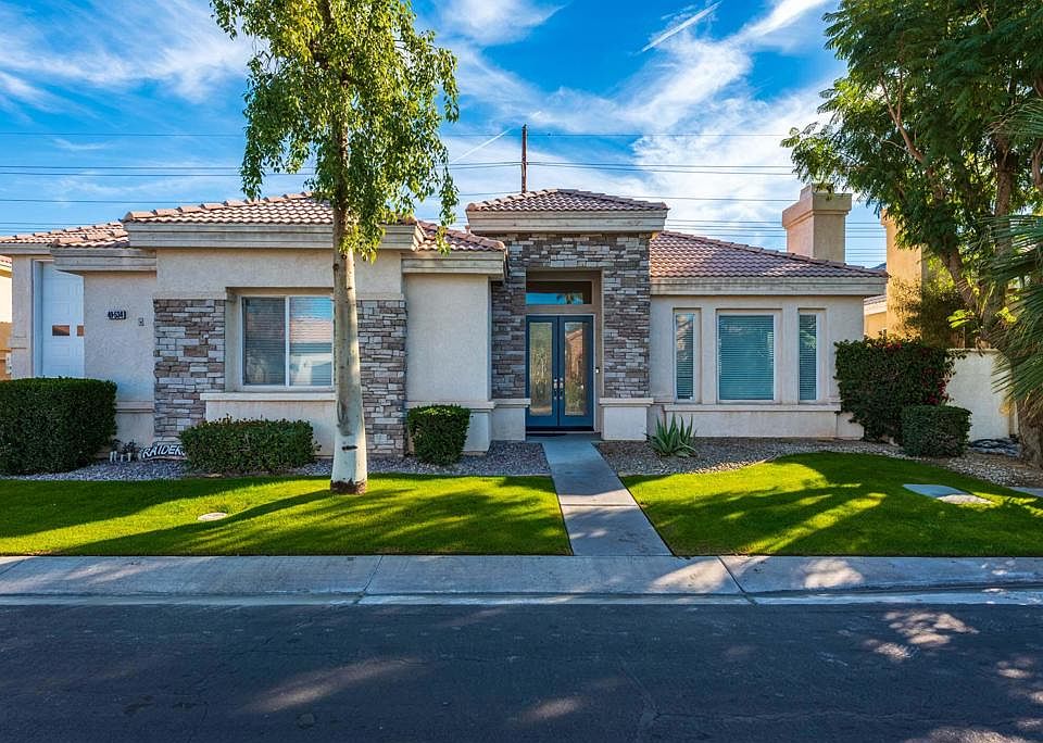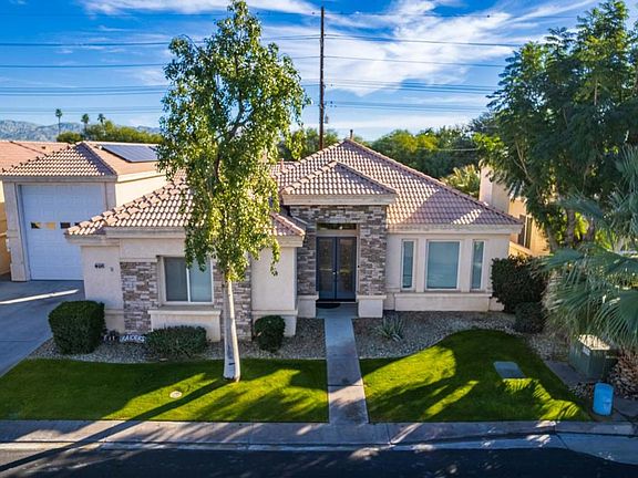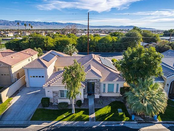 Nestled inside the prestigious gated community of Indian Palms Country Club. Perfectly suited for Short-Term Rentals!! I proudly presented to you this newly remodeled and stunning, 3- Bedrooms 3-Baths home!! Offering 2180 square feet of modern elegance. The beautiful kitchen boast a breakfast bar, with plenty of cabinets and storage space. Stainless steel appliances completed with granite counter tops. Inviting and bright area for family gatherings. Living room seamlessly welcome you to a family area, each adorned with a cozy and tastefully decorated fireplaces. The backyard is a delightful area that counts with splashy private pool and patio, ideal for relaxation and entertaining. Beside the garage this property offers an expansive RV garage with enough space for any of your leisure hobbies. Community allowed short term rentals! Did I mentioned is is a Turn key fully furnished?!? The community included, Tennis Courts, Gym, Restaurant, Club House and more. Residents enjoy exclusive access to a world-class country club and golf course making it a true oasis of luxury. Fully paid solar system included. Low HOA! This beauty certainly will not disappoint!!!