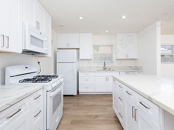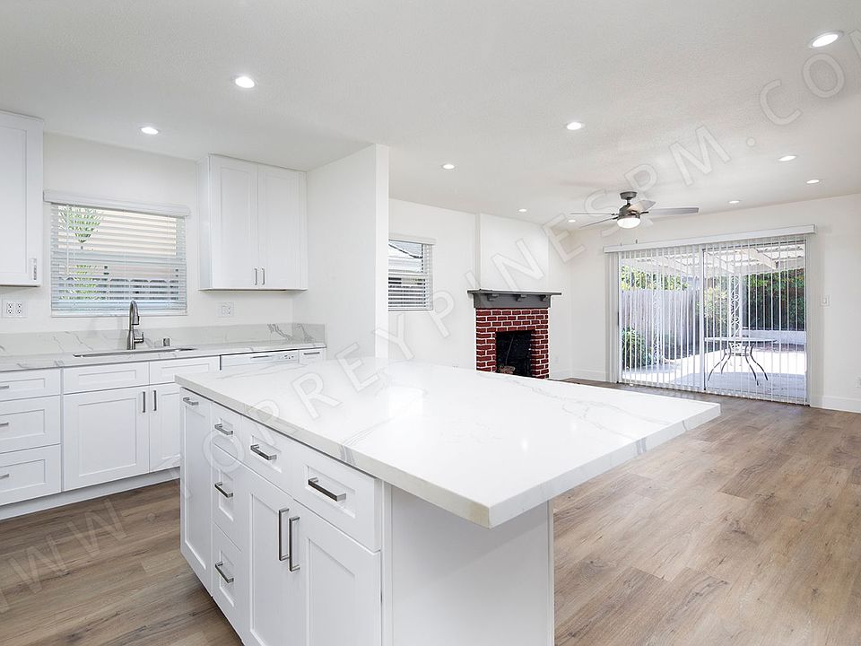 Welcome to this beautifully remodeled 4 bedroom, 2 bathroom home in the heart of Clairemont. Every detail has been thoughtfully updated, featuring new dual paned windows, new cabinets, quartz countertops, fresh flooring throughout, and brand new appliances. The inviting layout includes a cozy fireplace, central AC, and washer and dryer hookups for convenience. Enjoy the spacious two car garage with additional parking available in the private driveway, along with a large backyard that offers a covered patio and low maintenance turf landscaping. The front yard also features turf for added curb appeal!