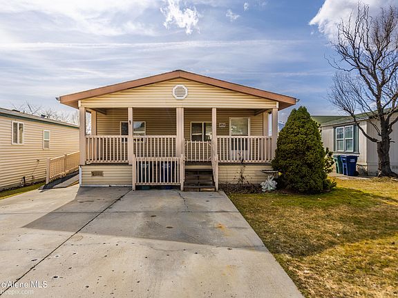 Welcome to a charming and affordable manufactured home located in the desirable Ridge View of Coeur d'Alene, a 55+ community. This cozy property, with 864 square feet of well-utilized space, offers a comfortable and low-maintenance lifestyle. Step inside to a spacious living room, perfect for relaxing or entertaining. The home features two bedrooms and one bathroom, providing all the space you need. An added convenience is the handicap ramp leading up to the home, ensuring easy access for all. Enjoy your morning coffee or evening breeze from the cute front porch. The property also includes a storage shed, providing a place for tools, outdoor gear, or hobby supplies. This is an incredibly attractive deal and a fantastic opportunity for anyone looking for a friendly, active, and peaceful 55+ community.