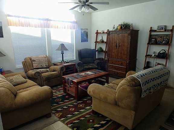 Beautiful Santa Fe style home, 3 bed, 2 bath, laundry room, 40 ft. Kool Cover with full RV hookups, brick patio, 600 sq.ft. Garage/Storage/Man-cave, 8X10 storage shed, friendly neighborhood, convenient access to desert exploring.