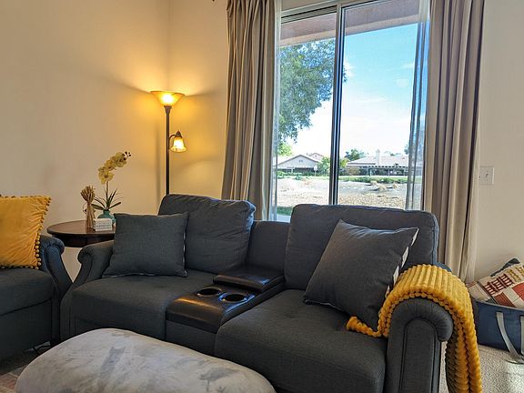 This property is located inside Indian Palms Country Club, a beautiful, serene, and gated community offering 24-hour security guard service. The residence consists of 2 bedrooms, 2 bathrooms, a kitchen, living and dining rooms, an open backyard, and an attractive front yard. The master suite has direct patio access, a large walk-in closet, and a separate tub and step-in shower. There is a laundry room with a washer, dryer, and a utility sink. The garage is capable of parking two vehicles, with a golf cart port that can be utilized for storage or other purposes.