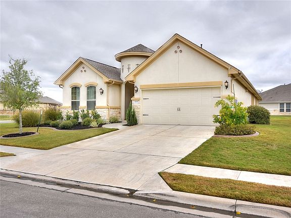 FABULOUS 2BR+Office home nestled on a corner lot in Round Rock's sought-after Vizcaya community for those 55 and better! Beautifully upgraded and immaculately maintained, you'll love this entertainer's floor plan! Wood floors, crown molding, arches and so much more! The wide open living, dining and kitchen areas flow seamlessly from one to the other, and you'll love the sunny solarium! Bathed in neutral colors and lovely natural light, the interior architecture is simply stunning. Kitchen with stainless steel appliances, gas cooktop, giant functional island with breakfast bar, gorgeous granite, corner pantry! Serene owner's suite with BIG walk-in closet and lovely ensuite with separate vanities and walk-in shower. The covered back patio with ceiling fans is spacious and is a great extension of the home's entertaining area. This active adult community with TONS of amenities is close to shopping, dining, grocery, healthcare, and main roads! Enjoy the parks, trails, pool, and more!