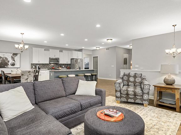 Nestled in an idyllic neighborhood, this home offers turnkey, one-level living. Step inside and enjoy the thoughtfully designed, open concept living spaces. Living room features gas fireplace, gorgeous built-ins, and private wooded views. Eat-in kitchens boasts a large center island seating for five, stainless steel appliances, and separate pantry. Main level primary includes beautiful ensuite bath and walk-in closet. Two additional bedrooms, full bathroom, and laundry also on main level for added convenience. Walkout lower level offers an amazing space for entertaining, with gorgeous fireplace, built-ins, and wet bar. Lower level also includes fourth bedroom, flex room, ¾ bathroom, and plenty of storage space. Fully fenced backyard with mature trees and spacious deck off the dining area. Incredible location just minutes to multiple parks, trails, and lake access. Convenient access to Navarre for all your shopping needs. Experience the best of one-level living with this stunning home.