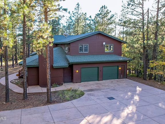 Mountain Sanctuary Near Snowbowl & Downtown Flagstaff Nestled at the base of majestic Mt. Elden. Set on 2 acres of serene ponderosa forest and oak trees, the 3,514 sq ft home is a haven of thoughtful mountain design. Step inside to a tongue-and-groove vaulted great room where natural light pours in and a cozy fireplace anchors the space. The flexible layout includes four bedrooms and three baths, featuring a spacious main floor guest suite ideal for visitors or multi-generational living. A second living area off the breakfast nook, complete with wood stove, T & G ceilings and deck access, adds warmth and versatility. Designed for seamless indoor-outdoor enjoyment, expansive decks invite morning coffee, evening sunsets, and peaceful private views in every direction. The property also offers abundant level parking for cars, RVs, and trailers, plus direct access to miles of Forest Service trails for hiking, biking, and exploration. A rare blend of convenience, character, and mountain serenity. This Flagstaff gem is ready to welcome you home.