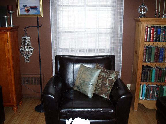 Light oak refinished hardwood floors throughout, reversible three speed ceiling fans with lights in each bedroom, five closets in apartment, builtin china cabenet, blinds on all windows.