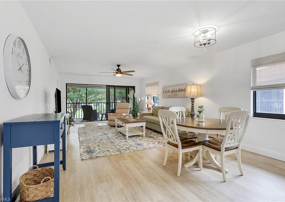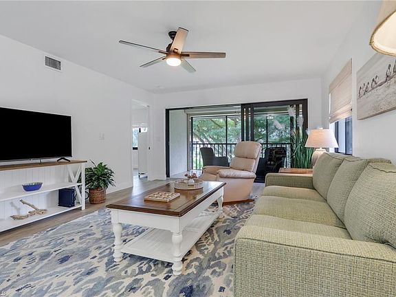 Step right in and start living your Florida dream! This bright, end unit is filled with natural light, creating a cheerful and airy ambiance. Comfort and elegance come together in a coastal-inspired design featuring neutral flooring, soft tones of sand, sea and sky, creating a tranquil atmosphere throughout. This recently refreshed two bedroom, two bath residence is truly move-in ready. The kitchen showcases light cabinetry and countertops, and stainless steel appliance package. Relax and enjoy the beautiful Florida weather on the lanai, surrounded by lush tropical landscaping. For peace of mind, hurricane impact windows and shutters provide effortless storm protection. Conveniently located just a short drive from downtown Naples and it's golden sandy beaches, this home offers the perfect blend of style, comfort, and location.