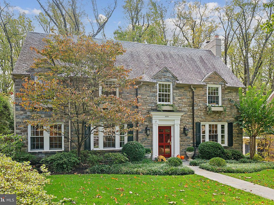 Immaculately updated and classic Spring Valley fieldstone home on one of the neighborhoods most desirable streets with private access to Spring Valley Park. 4956 Quebec Street is a sophisticated property that has been beautifully maintained and expanded over the years. A bluestone path and bright red front door welcomes you into the homes two-floor entry foyer which is centered around a dramatic curved staircase. Large rooms with excellent flow dominate the main level and create a space ideal for parties and entertaining. The formal living room features original moldings, two distinct seating areas and a charming fireplace. The oversized formal dining room has ample room for a seating of 10 or more and is serviced by a new gourmet kitchen with eat-in breakfast area, oversized island and direct access to a wraparound rear teak deck with park views. Adjacent to the kitchen is the expanded family room and full bar with rich custom wood finishes, fireplace, coffered ceilings and three exposures of French doors leading outside. Upstairs on the 2nd floor you will find four full bedrooms including a sumptuous owners suite with flanking walk-in closets, spa-like bathroom, fireplace and views of the abutting park. The third-floor features two additional bedrooms with sun drenched skylights and a full hall bathroom. A functional lower level features a separate 7th bedroom (Au-pair suite) with private entry, a climate-controlled wine cellar, expansive home gym or recreation area and a true two car garage. Meticulous landscaping, hardscapes and outdoor entertaining areas make this home a private refuge nestled among the trees and yet a short distance from the amenities of Spring Valley and NW Washington DC.