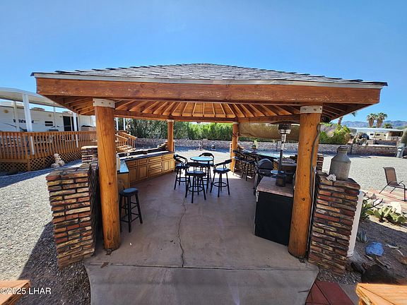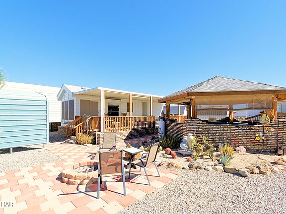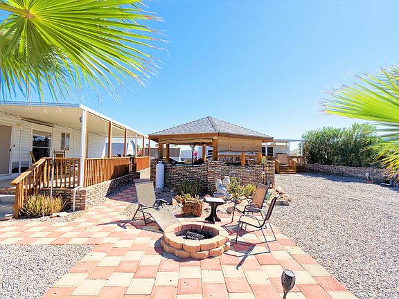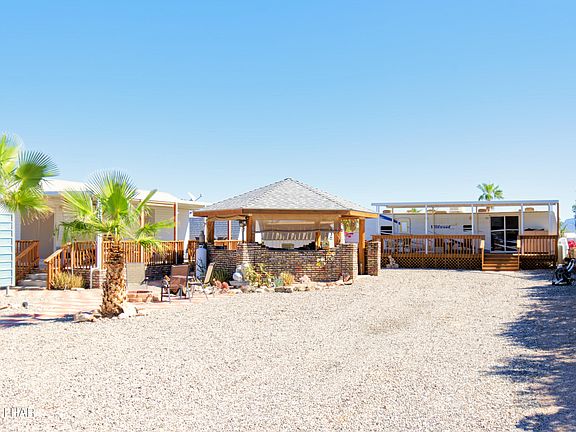 Unique setup in Rainbow Acres that's great for entertaining! Cavco Park Model with huge deck, 40' Wildwood for guests and a gazebo with full kitchen is the party place. No expense was spared on this sturdy gazebo that is the center of the property. Cavco is in great shape and comes furnished. The Wildwood also has a large deck, has a Mini-split unit for comfort, is clean and setup nice. Large side parking with full hookups for your traveling guests. Carport can hold 2 vehicles. Lovely landscaping and fully walled with Mexican brick and gated. A couple large sheds give you laundry hook-ups and plenty of storage. This is a great setup to share with friends or to use as an income property.