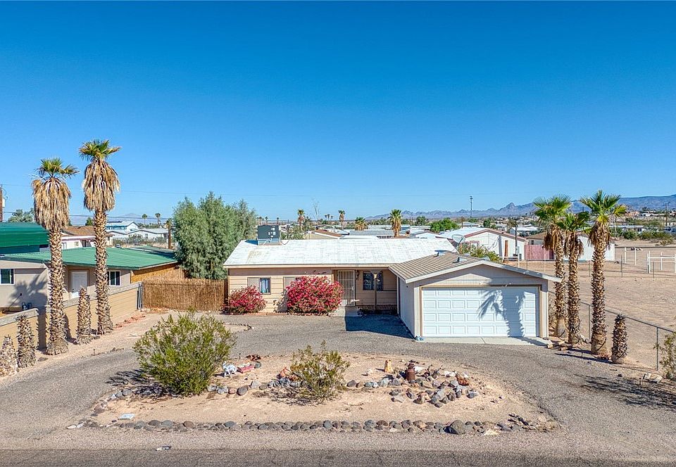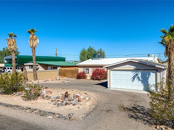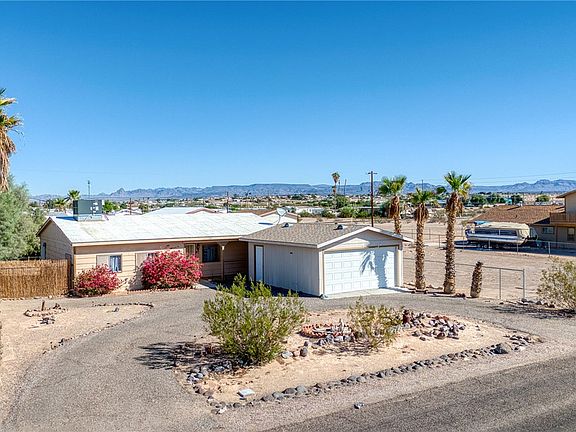 Welcome to 4957 Keyenta Drive in Topock, AZ. This cute stick built home is offering 2 bedrooms and 1 bathroom and has approximately 1,080 sq ft, with a 2-car garage attached. Central and evaporative cooling, and a functional, open layout. Inside, you'll find comfortable living spaces, an efficient kitchen, and updated flooring throughout. Outside, the property sits on a spacious lot with covered patios, desert-friendly landscaping, and plenty of room for RV or toy parking. Located in the quiet and friendly Golden Shores community, you're just minutes from the Colorado River, Topock Gorge, boating and fishing access, and miles of off-road trails. With nearby local bars, restaurants, and Route 66 charm, this home offers the perfect base for both adventure and relaxation in a true Arizona desert-river lifestyle.