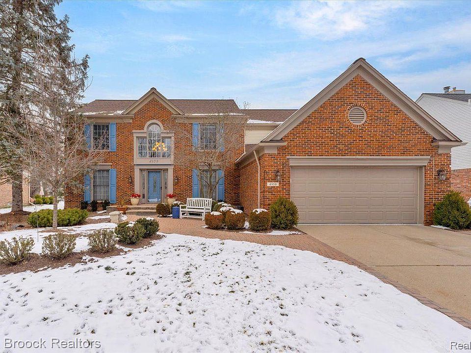 Meticulously maintained Colonial situated on a park-like setting. Quality construction with attention to detail. Designed for entertaining with open floor plan and generous room sizes. Beautiful hardwood floors throughout, recessed lighting with custom light fixtures and neutral decor. Island granite kitchen with custom backsplash and SS appliances with eat-in kitchen with doorwall to large brick paver patio and backyard; maximizing indoor/outdoor living. Butlers Pantry leads to Formal Dining Room. Sundrenched Family Room w/ floor to ceiling windows bringing the outside in. Spacious Living Room with dual gas fireplace shared with the library/office. 1st floor powder room and laundry room with direct access to 2 car garage. Large primary suite featuring walk-in closet, bath with dual vanity, tile shower and jet tub. 3 additional bedrooms and full tile bath. Finished basement with bonus room with recessed lighting, built-in bar, pool table and full bath. Plenty of storage. Newer furnace, Central Air and HWH. Prepped for central vacuum. West Bloomfield Schools.