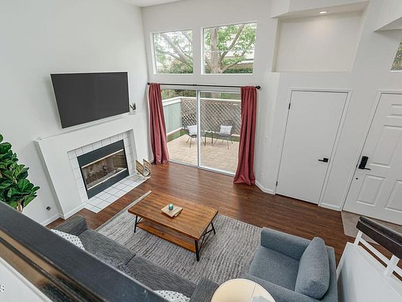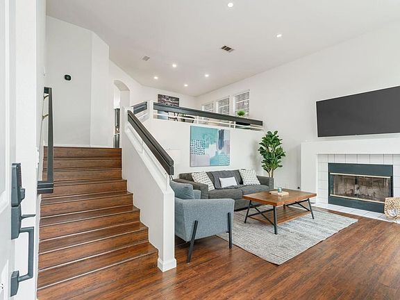 Fantastic end unit Cape Weston townhouse situated in a great private location! This turnkey home has an updated kitchen with newer counter tops, backsplash, fixtures, stove and microwave. Remodeled bathrooms with beautifully tiled primary bathroom shower, newer vanity and fixtures. Includes new LED recessed lighting in all rooms, new light switches, outlets, door hinges/hardware throughout. Newer hardwood floors, interior paint and Smart water heater. Nice size brick patio off the living room and small balcony off the kitchen. The two-car garage has an electric vehicle charging outlet, good storage and direct access to the home. Close to the pool, spa and guest parking. Located within walking distance of Thille Park, Barnes & Noble, shopping, restaurants and close access to freeways.