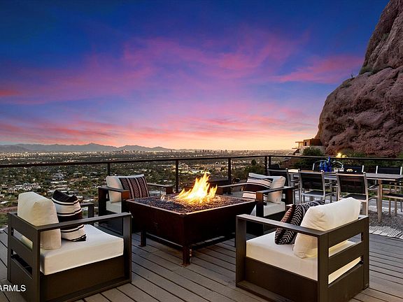 Discover the pinnacle of desert elegance in this extraordinary Camelback Mountain retreat. Waking up to sweeping views of Phoenix and Scottsdale, this refined 4‑bedroom, 3‑bathroom home with its own detached guest house spans 3,455 sq ft across a serene 1.25‑acre hillside. A chef's kitchen is updated for both function and flair, leading to an inviting spa‑style primary suite that promises rest and rejuvenation. Recent upgrades in 2025 include a new roof, fresh paint, and impeccably refinished wood floors. Outdoors, indulge in resort‑like living with a heated pool, soothing spa, elegant fire features, and two expansive decks perfect for sunset gatherings. Proximity to premier dining, shopping, and entertainment in Scottsdale and the Biltmore areas.