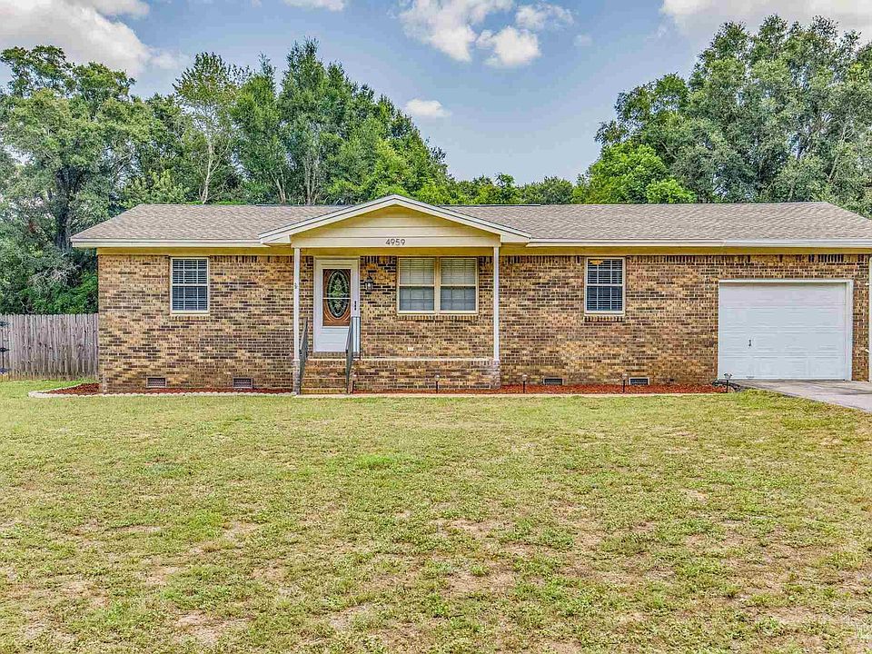 Comfy home right in the heart of Pace, perfect for a first time homebuyer, or retired couple needing to downsize. NEW ROOF! Close to Pace Highschool, and other highly desired schools. Split floorplan with a full bathroom on each side. Stainless steel refrigerator and dishwasher. Tiled dining area opens up to carpeted living room, or take up carpeting to find engineered wood floors. There is a large storage room that can be used as an office. Screened back porch perfect for grilling or lounging with some sweet tea. Home is situated on a 1/2 acre lot with a good portion of this being the fenced back yard. There's a large covered area with storage building for all the yard tools, or boat storage. Call for a showing today!