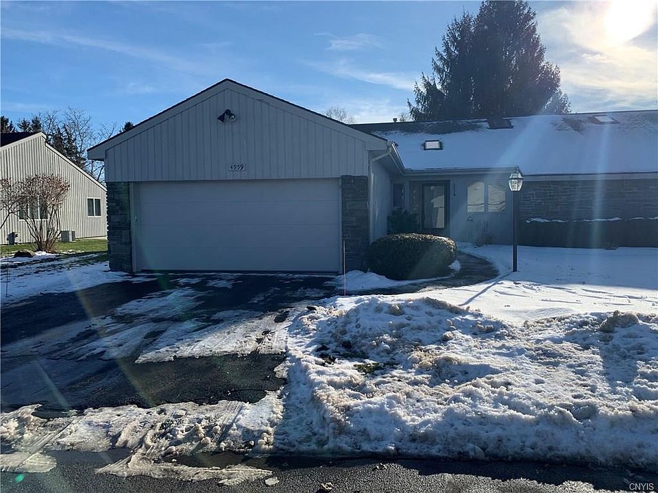 Open floor plan, everything on first level. Sliders to deck from great room and from master bedroom. Master bath is wheelchair oriented. Vaulted ceilings in great room feature the floor to ceiling gas fireplace. Ravine Road is a cul de sac, the unit has a private feeling on the back deck. Self cleaning feature on ovens doesn't work.refrigerator needs water filters changed, dishwasher new in 2019. One time $700 condo initiation fee. Exterior to be painted 2020, driveways sealed every 3 years. Roof is responsibility of owner and must be replaced at the same time as the adjoining unit. No age of roof is available.