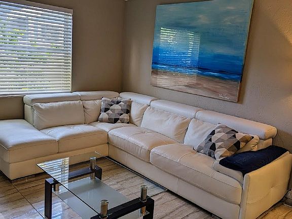 The apartment is a two-bedroom one-bath that has a home office within it that is occasionally used as a third bedroom. It's furnished and was recently updated. Renovations included Hurricane Impact windows, a new kitchen with ss appliance package, a breakfast island and new Living room furnishings.