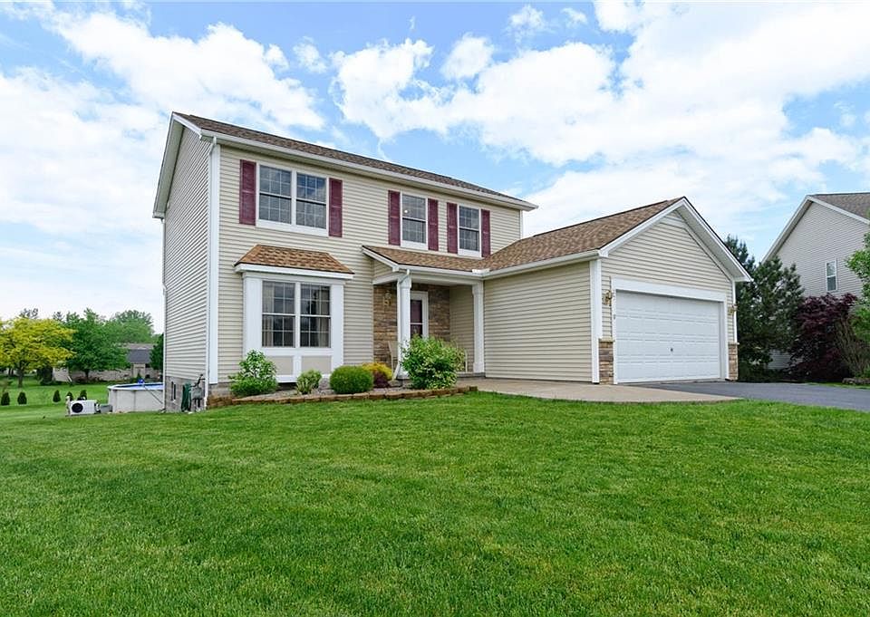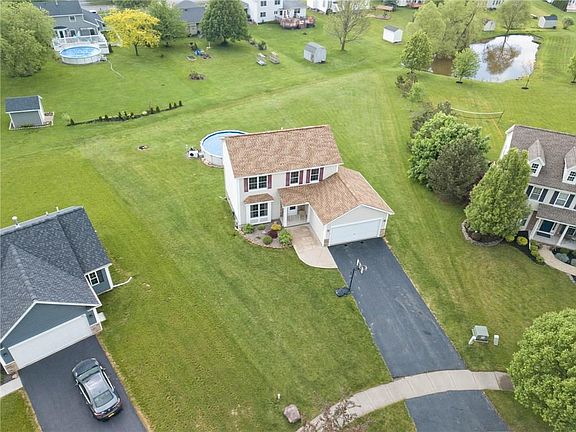 MATTERPORT TOUR ATTACHED: This custom-built colonial is ready to be moved into. You're going to love the gleaming hardwood floors. It features a professionally finished 12-course basement with a roughed in full bath that is currently functioning as a half bath with plumbing installed for a shower or bathtub. All of the interior walls throughout feature upgraded insulation designed to dampen sound and preserve the room's temperature. All of the closets have lights inside of them. There are dimmers in almost every room and there are over 30 recess lights throughout. The square footage does not include the finished basement, Square footage is 1780 including finished basement with full egress, legal space. Staircase from the garage to the basement as well as the staircase in the house. HEATED POOL!