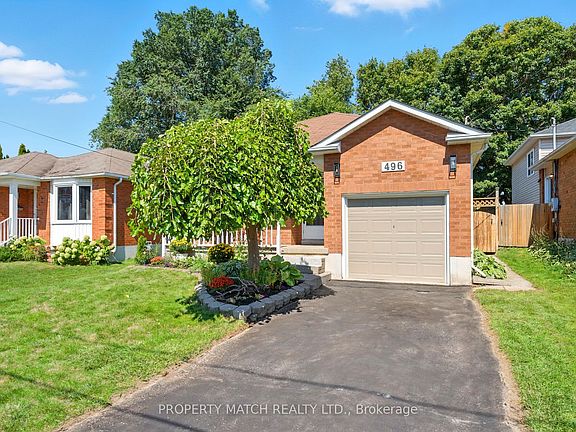 Stunning 3+1 bedroom, 3 bathroom, 4-level back-split on quiet cul-de-sac in Cobourg's desirable west end waterfront neighbourhood! Extensively updated over the past year with beautiful new laminate flooring throughout, fresh paint, kitchen refresh with quartz counters and updated lighting, and bathroom refreshes. The fully finished basement is an entertainer's dream featuring a recreation room with custom bar, additional bedroom, dedicated office space, and brand new full bathroom.Located just steps from Lake Ontario and Cobourg's scenic waterfront trails, this home sits on a private fenced lot surrounded by mature trees. The covered deck, accessed through walkout sliding doors from the kitchen, provides perfect outdoor entertaining space. Inside, enjoy the bright living room, open dining area, and lower level family room with cozy gas fireplace. The kitchen boasts quartz countertops, butcher block accent counter, and refreshed cabinetry. Recent improvements include new garage door, sealed driveway, modern switches and fixtures, stylish exterior lighting, and freshly painted deck. Beautiful gardens feature lilacs, roses, perennial beds, and mature mulberry tree.Excellent school options nearby: Burnham Public School (10-minute walk), Terry Fox Public School (5 minutes by car), Cobourg Collegiate Institute for secondary, plus French options including École élémentaire Viola-Léger and ES Ronald-Marion. Four parks and twelve recreational facilities within walking distance. Close to Northumberland Hills Hospital, transit, Hwy 401 and VIA Rail station.