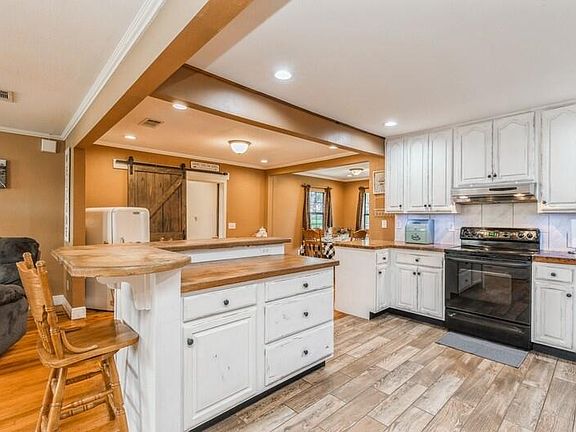 Introducing a captivating countryside retreat! This immaculately renovated farmhouse sits on an expansive 16+/-acre canvas of natural beauty, offering a serene and picturesque living experience. Nestled among mature trees and a sprawling pasture, this property provides ample space for your dreams to flourish.Step inside to discover the charm of rustic elegance seamlessly blended with modern amenities. The heart of the home boasts rustic-style painted cabinets, while the natural wood flooring lends warmth and character. Hand-crafted barn doors exude craftsmanship, adding a touch of nostalgia to the atmosphere. The kitchen is a culinary haven, featuring concrete countertops that beautifully complement the farmhouse aesthetic. An open floor plan enhances the spaciousness, connecting the kitchen with an inviting island and a hop-up bar for casual dining. Stainless steel appliances offer both style and functionality, catering to your every culinary need. Upgraded bathrooms exude sophistication, with updated flooring, fresh paint, and new light fixtures that add a modern touch. Wood countertops, sourced from the property's own trees, embody a true connection to nature. This remarkable property boasts two entrances, providing convenient access. Adding immense value to the package, the 2018 HVAC system and 2015 hot water heater ensure your comfort year-round. Enjoy the best of both worlds with well and city water options, catering to your preferences. The crown jewels of this property are the incredible outbuildings. A brand new 32x36 pole barn with a 15x36 lean-to is a versatile space, offering two enclosed areas (9x13 each) and a 9x32 loft. A 50-amp RV connection and water hookup provide convenience for your travel adventures. The home's electrical system was entirely rewired in 2016, ensuring modern efficiency and safety. A substantial 200-amp power service to the garage, complete with a separate meter, adds convenience and flexibility. An additional 30-foot driveway opens up access to the pasture, enhancing functionality. Original hardwood floors grace most of the home, evoking timeless beauty and connecting the past with the present. A spacious chicken coop within a fenced barnyard area promises a rewarding farming experience. With a brand-new dishwasher in 2023, every detail has been carefully considered for your comfort. This exceptional property is not just a home; it's a lifestyle. Seize the opportunity to own a piece of tranquility and charm, where the fusion of rustic allure and modern amenities creates an enchanting haven. Don't miss out on making this farmhouse dream your reality. Contact us today to schedule your private tour and experience the magic for yourself!