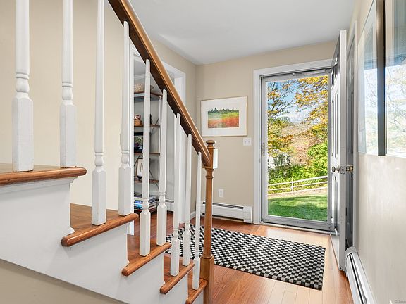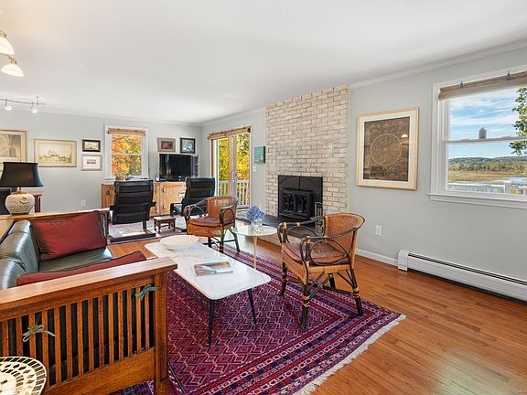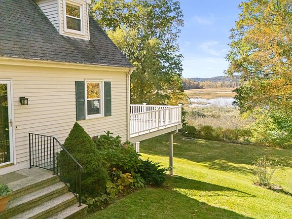 Nestled in the Hadlyme section of Lyme, "Tail of the Whale" is a charming 4-bedroom Cape set along picturesque Joshuatown Road. This serene retreat offers stunning westerly views over the Whalebone Estuary and 325 feet of frontage on Whalebone Creek, with tidal access for kayaking or canoeing to the nearby cove and Connecticut River. The gently sloping lot conceals a wetland with level lawn at the water's edge and a naturally occurring swimming hole-perfect for cooling off on a hot summer day. A large composite deck invites peaceful outdoor living affording sublime views amid captivating natural surroundings. Inside, the nicely updated kitchen features a bay window, wood floors, granite counters, twin sinks, and a gas cooktop range. The versatile L-shaped living/dining room has wood floors, a handsome brick fireplace, and direct access to the deck. Upstairs, the spacious primary bedroom captures water views and shares a full bath with two additional bedrooms. The lower-level walkout provides ample storage, workspace, and potential for future expansion. A custom built detached two-bay garage, extensive stonework, professional landscaping, and manageable flower gardens enhance the appeal of this unique waterfront gem.