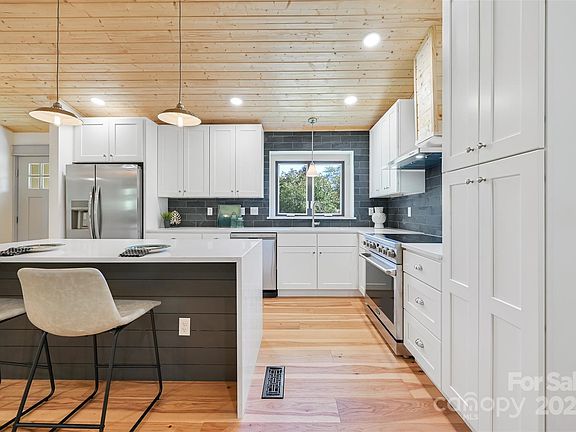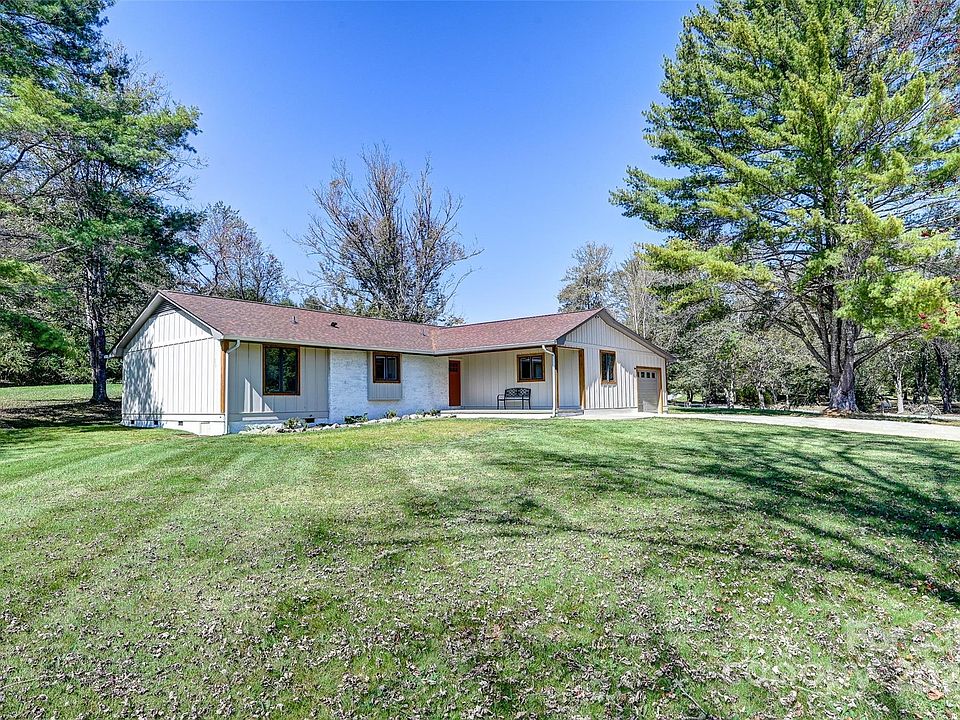 Benton Hills beauty available! Masterfully renovated one level home on a huge flat lot perfectly located just moments from the entrance of Pisgah National Forest and Downtown Brevard. Twenty minutes to the Asheville Airport, this home offers exceptional livability whether you are downsizing or looking for a perfect family home. Walk into the light filled chefs kitchen and living area that features a wood burning fireplace and imagine sharing a meal with loved ones. Hickory hardwood floors throughout provide a seamless transition betweeen spaces. Large primary suite features a walk in shower and deck access. In addition there are two guest rooms and a light filled office conveniently separated from the main home by a mudroom.