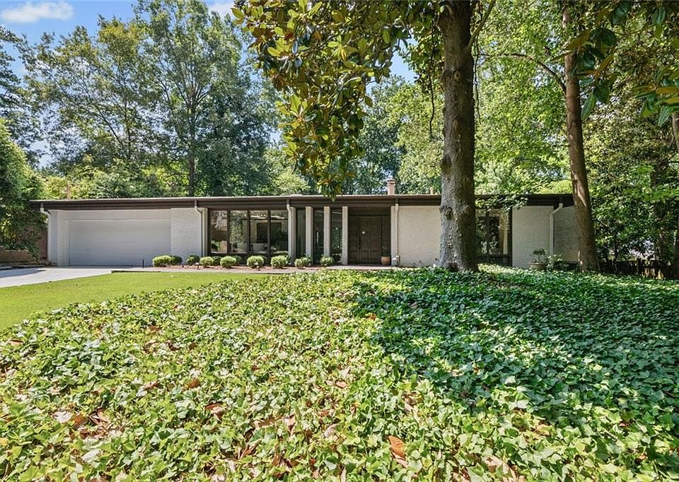 Welcome home to this stunning true mid century modern masterpiece. Designed and built in 1963 by the original owner, this home features everything you could hope for. Situated on a full half-acre you will appreciate walking through the front door with a direct view across the sunken living room to the expansive pool and deck area. Palm Springs in Atlanta! Featuring two bedrooms, an office that can be a third bedroom and three full bathrooms all on one level. The formal dining room features floor to ceiling windows and is located just off the galley kitchen, which features skylights to let in endless natural light. Adjacent to the galley kitchen and sunken living room is a breakfast area that leads to a solarium area perfect for playing cards. You’ll find a full bath and a wet bar too. The owner’s suite features expansive views of the pool and deck and includes an en-suite bathroom complete with massive walk in shower, separate water closet and skylights. You will also find ample closet space with the walk in closet. The secondary bedroom features a walk in closet and is situated at the front of the home. A full bathroom and laundry are also on the main level. There’s a bonus room below the pool area that formerly included a hot tub and is ideal for renovation or storage. Mature landscaping makes this home a must see. Minutes from Buckhead Central, Northside Drive and Bobby Jones Golf Course. Shopping, schools and entertaining are convenient as well.