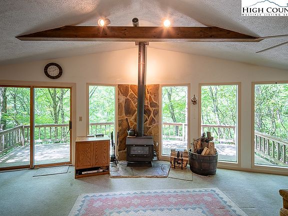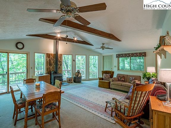 THIS MOUNTAIN CHALET CAN BE YOUR SPECIAL GETAWAY! And it comes with THREE additional lots!!! This home features 2 bedrooms and 2 baths, PLUS a bunk bed area. And there's room to expand with the three additional lots, or just keep them as a buffer! Enjoy building toasty fires in the woodstoves. Ahhh... the romantic ambiance!! Large open back deck. One low HOA fee of only $165/month includes water and sewer, what a deal!!! Mill Ridge Subdivision is located in the cool mountains of North Carolina between Boone and Banner Elk, a family friendly mountain community with an outdoor heated swimming pool and tennis courts. County taxes ONLY!!!! House needs a bit of TLC.