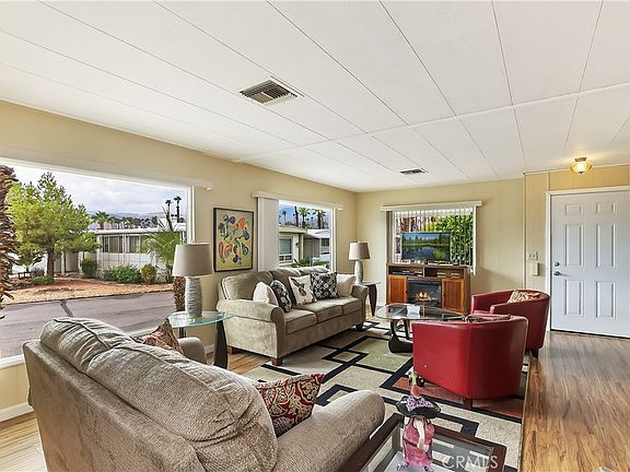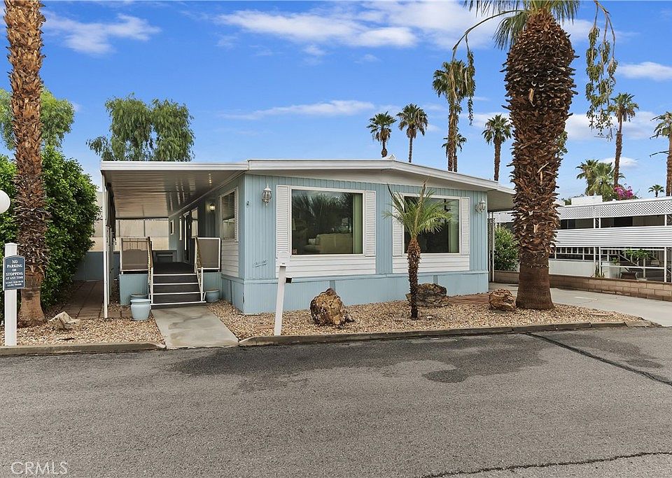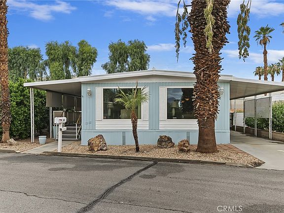 Welcome to this charming 2-bedroom, 2-bath manufactured home in the age-qualified Royal Palms community, perfectly situated among swaying palm trees near Palm Springs and the San Jacinto Mountains. Offering 1,440 sq. ft. of comfortable living, this home comes fully furnished, making it move-in ready. Enjoy the convenience of a laundry room, a relaxing back patio, and a covered carport.