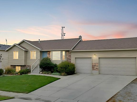 This charming home provides desired space with its 5 bedrooms 2 gathering areas and an additional game room/hair salon/office with a 3 car garage & RV parking! Convenient location that puts you just minutes away from all restaurants, grocery store, schools, and healthcare. If you are in to homesteading this home is setup and good to go with mature landscaping that provides producing peach, plum and apples trees, plus a producing raspberry patch, and vegetable garden area lined with a soaker hose and last but not least a Chicken coop w'power for winter watering. Beautiful bushes and shade trees surround a private patio covered with a darling trellis. Garage has a separate electrical panel w'a 220V plug. Internet is Direct Comm. Inside provides ample spacious for all types of activities. Cozy primary suite, front room leading to kitchen and dining area. Wood burning stove in basement heats the home all winter long! Ready for your personality and memories!