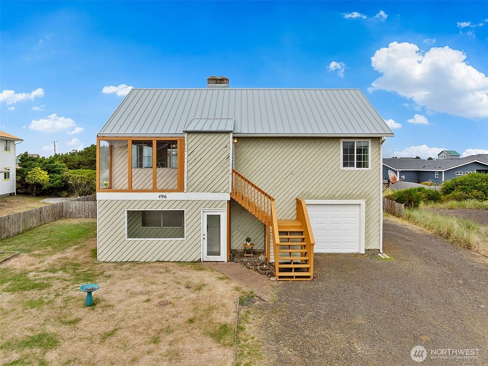Multigenerational/Rental Opportunity in Ocean Shores. Home is surrounded by large windows w/ plenty of natural Light. 3 Bedroom 1.75 Bath w/ a detatched 4 car garage/shop 1200 sq ft. Large living room with a partial view of ocean & a wood burnin fireplace .Kitchen with dining area & extra bar seating. Attic is 12 feet wide by 36 feet the length of the house! Lower level has a separate entrance with a living room,bedroom, bath, Kitchen & 1 car attatched garage. Walking distance to the Beach and hear the power of the Ocean & smell the fresh air! Plenty of Bicycle and ocean trails, with a community clubhouse, gym, golf, indoor & outdoor pool. Great shops & restaurants close by! A Bit of TLC will make this place shine!