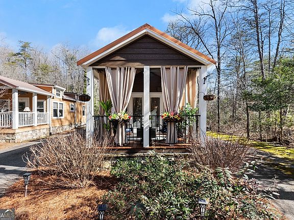 DARLING MOVE IN READY PARK MODEL TINY HOME NEAR HIGHLY DESIRED LAKE BURTON... INCREDIBLE GETAWAY being sold turn key and fully furnished! Charming front porch welcomes you to the spacious living area with abundance of natural light and high ceilings. Open concept design flowing into the kitchen with plenty of counter space and cabinetry for storage. Relaxing owner's bedroom with vaulted ceiling and built in dresser. Upstairs loft currently used as second bedroom could be used as a playroom, plus bunk beds in the hallway affording ample accommodation for your guests. Large lot backing up to a creek, plus storage building is included. Excellent location minutes from Lake Burton and walking distance from renowned Bleu Canoe restaurant. Community features a clubhouse with inviting outdoor area, dog park, fire pits, and picnic areas. Currently used as a vacation home and could be turned into a short term rental or full time residence. BONUS: Brand new HVAC system and Trailwave fiber internet is available. This property is a true must see! Contact our team today for your private tour!